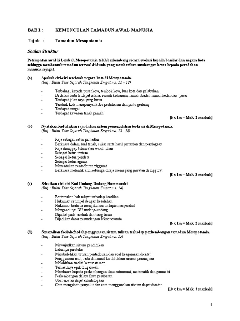 Soalan struktur dan esei sejarah tingkatan 4 bab 2 jawapan. Bab 8 Membina Kemakmuran Negara. Pembentukan tamadun awal manusia telah menyumbangkan pelbagai kemajuan pada dunia.